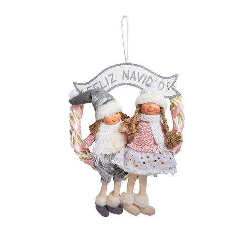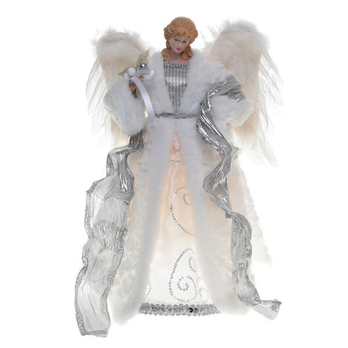 Adorno navideño EXIMEX angelita con moño y berries 40 cm blanco