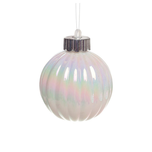 Adorno navideño EXIMEX esfera gajos blanco tornasol