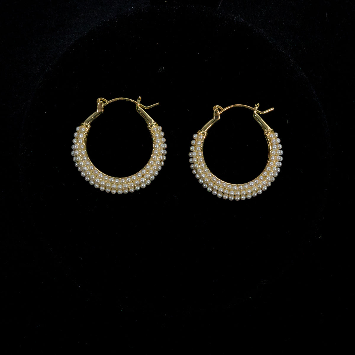 Las arracadas delgadas ARETTE con mini perlas doradas combinan la elegancia clásica con un diseño moderno y delicado. Su estructura fina y ligera en tono dorado está decorada con pequeñas perlas que aportan un brillo sutil y femenino, creando un equilibrio perfecto entre sofisticación y estilo contemporáneo.