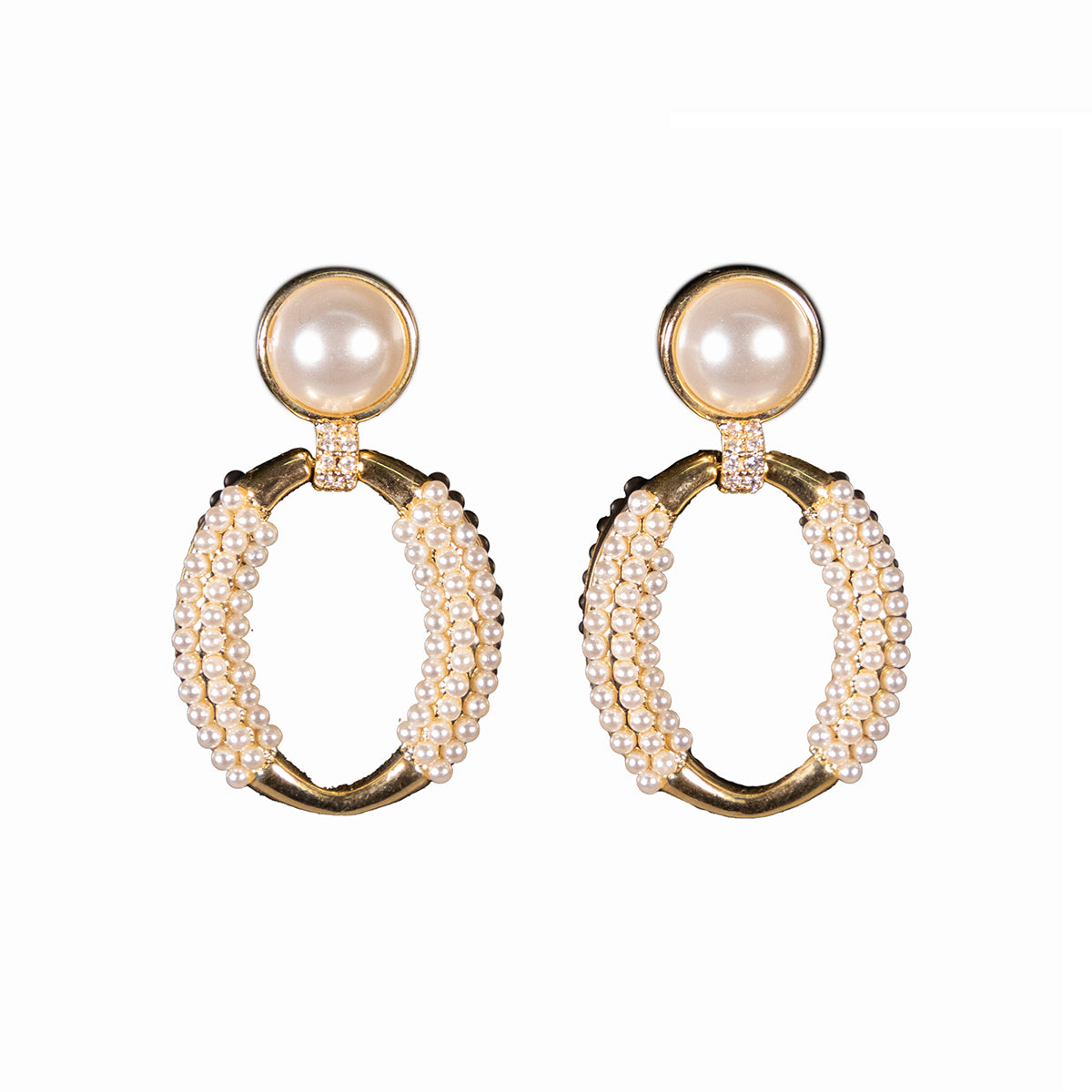 Aretes redondos largos color dorado con perlas mallorca con un diseño elegante y distinguido para ocasiones especiales.