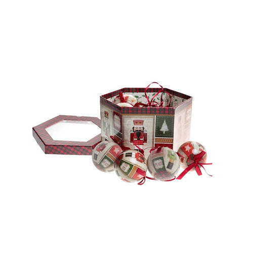 Adorno navideño EXIMEX caja con14 esferas diseño de cascanueces multicolor
