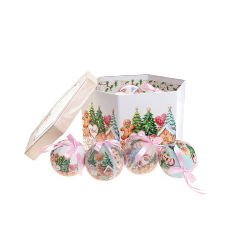 Adorno navideño EXIMEX caja con 14 esferas diseño de galletas de jengibre