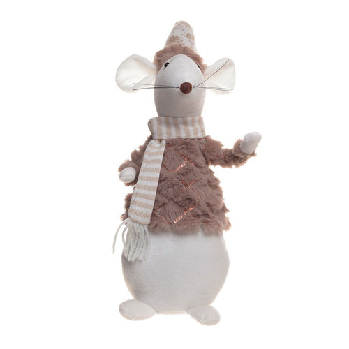 Adorno navideño EXIMEX raton sueter y bufanda champagne blanco