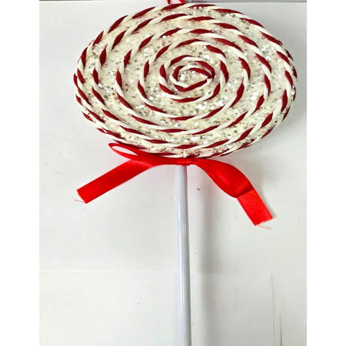 Adorno navideño EXIMEX paleta candy hilo gde 15 cm blanco con rojo