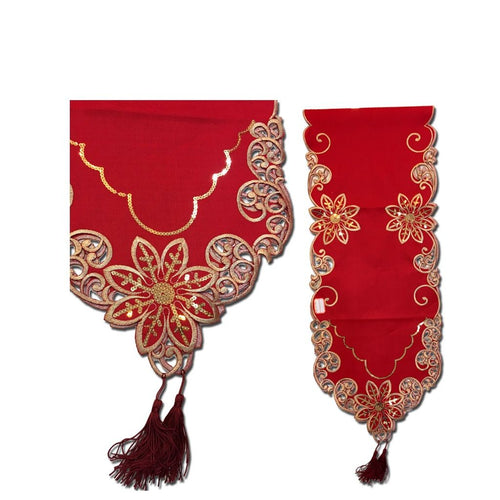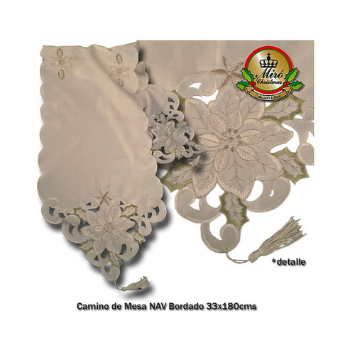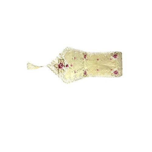 Camino de mesa IAE de tela con bordado de flores en color rosa medidas 180x40 cms