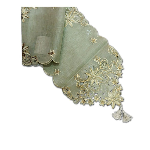 Camino de mesa IAE de tela con bordado de flores en color amarillo medidas 180x40 cms