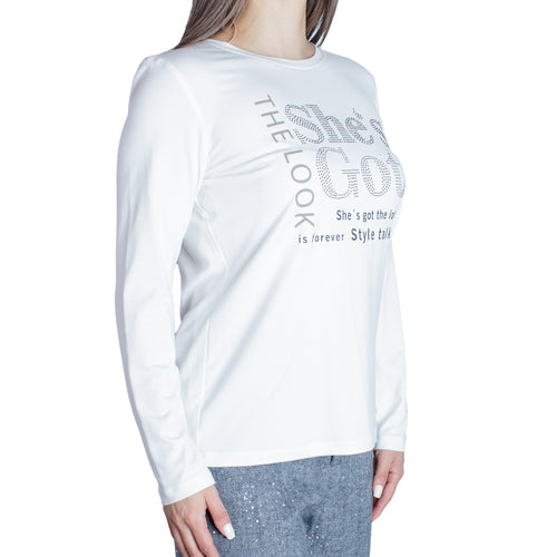 Playera lycra FOLEYS estampado letras con bordado de chaquira para mujer