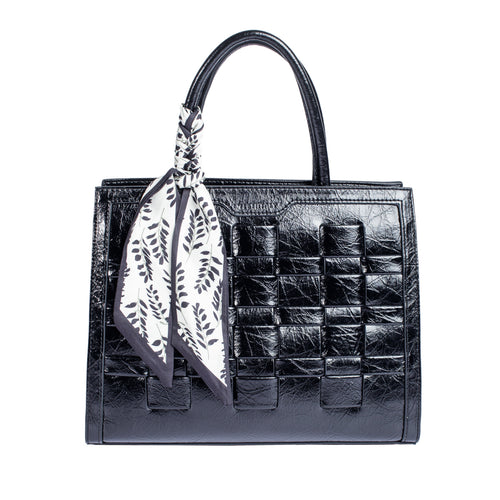 Bolsa tote MM ITALY pequeña con detalle de pañuelo color negro