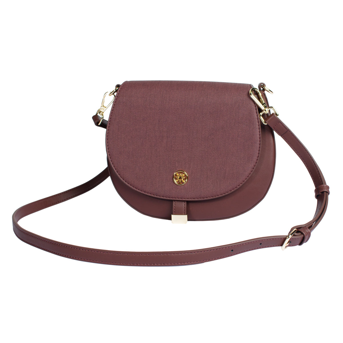Bolsa cross body MM ITALY broche dorado color vino