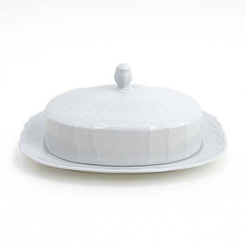 Platón de porcelana EL TRIUNFO diseño de hoja color blanco