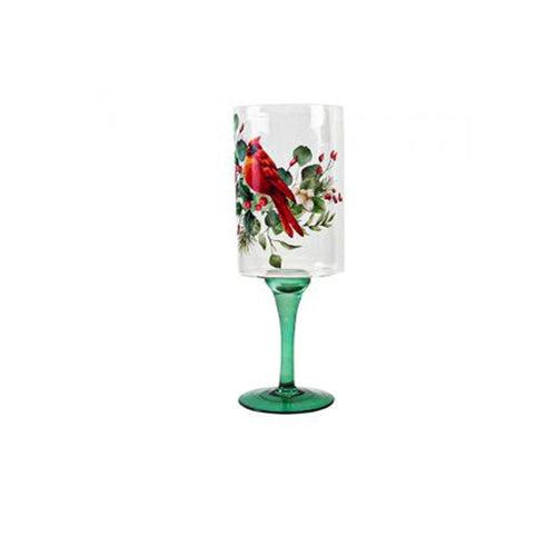 Candelabro EL TRIUNFO de cristal con decorado de cardenal y base verde
