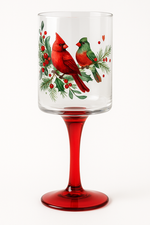 Candelabro EL TRIUNFO de cristal con decorado de cardenal y base roja