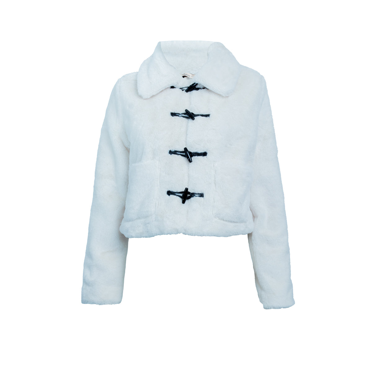 Abrigo cropped STREET GLAM tela de peluche para dama