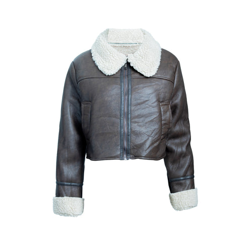 Chamarra cropped STREET GLAM vinipiel con forro de oveja para dama