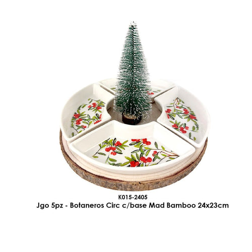 Botanero DEI de porcelana con base de bambú de 24 x 23 Cm