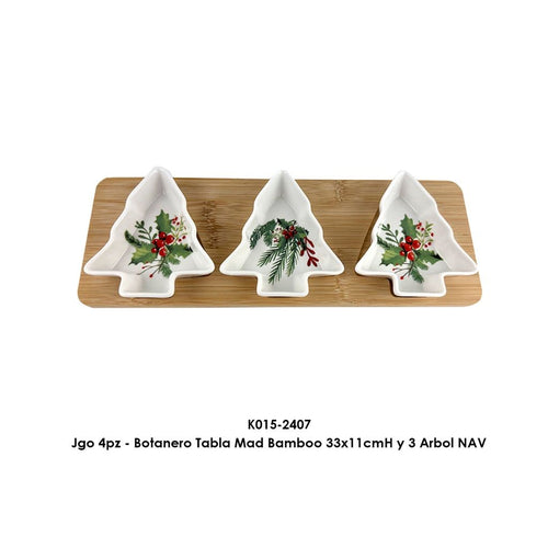 Botanero DEI de porcelana con base de bambú de 33 x 11 cms
