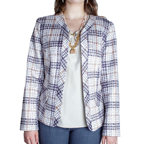Conjunto de 3 piezas JOCES pantalón de vestir, camisa con olanes y saco largo de cuadros para mujer
