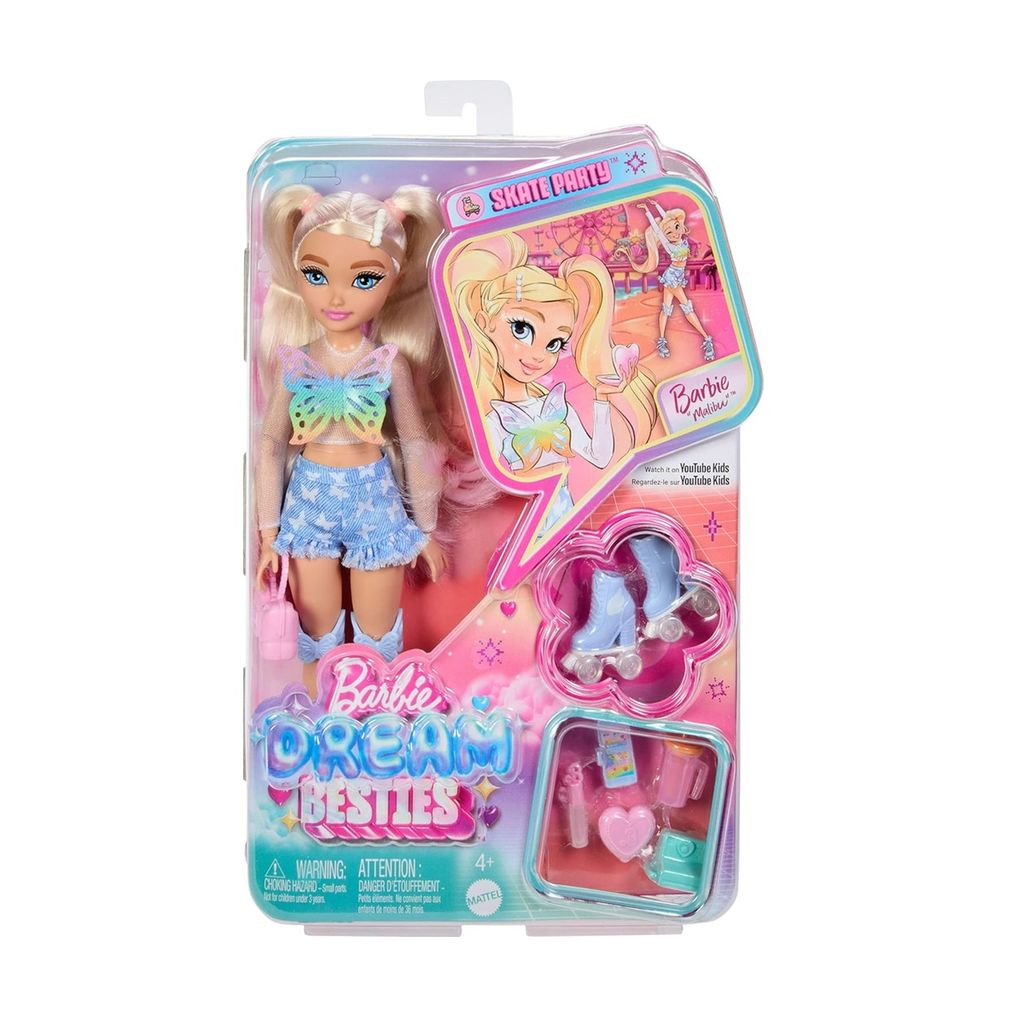 Muñeca Barbie DREAM BESTIES Malibu patinaje JFX96