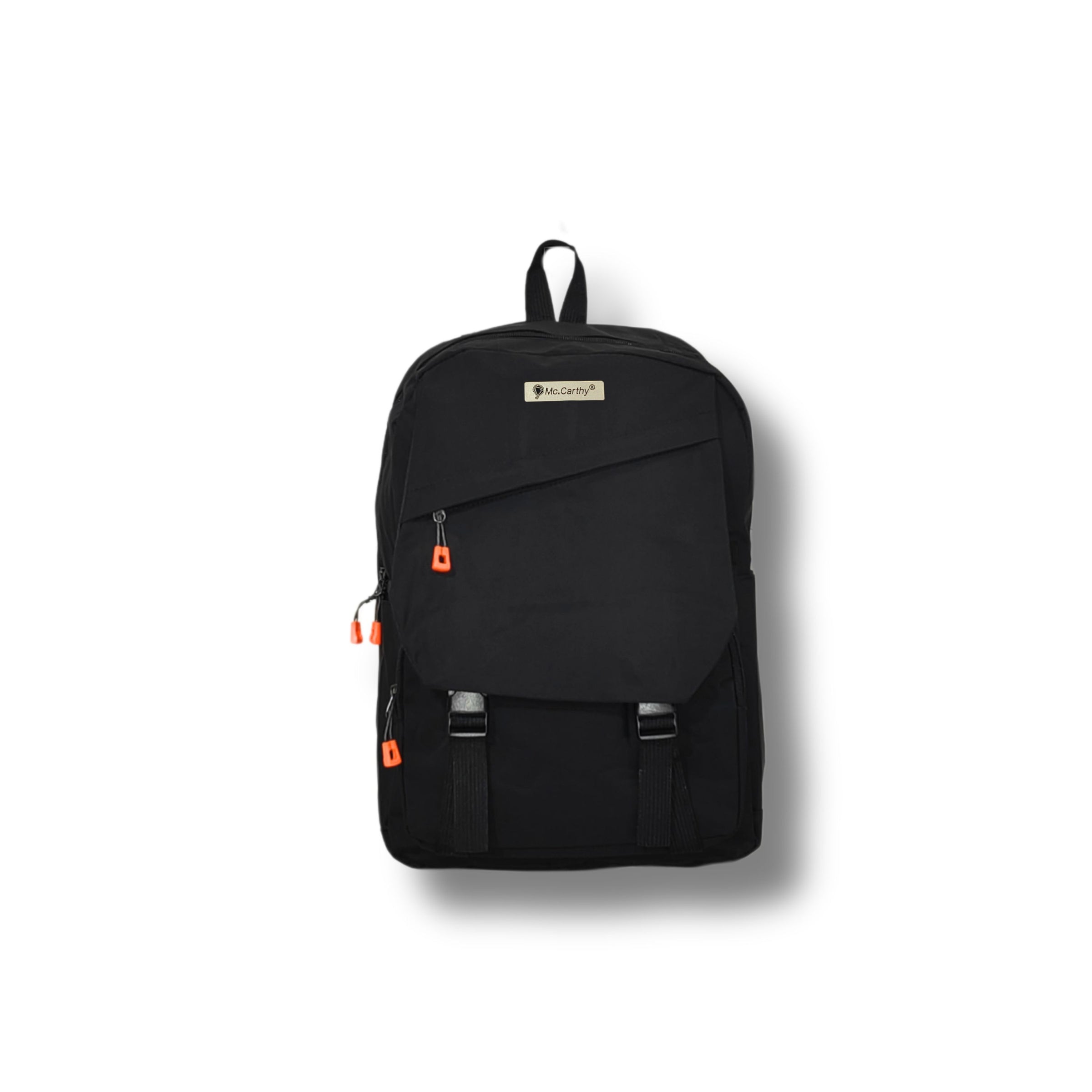 Su diseño incluye cierres con tiradores naranjas para un toque moderno, correas ajustables para mayor comodidad y un bolsillo frontal con solapa y broches para mantener tus pertenencias seguras. Perfecta para llevar libros, ropa, dispositivos electrónicos o accesorios, manteniendo todo organizado y protegido.