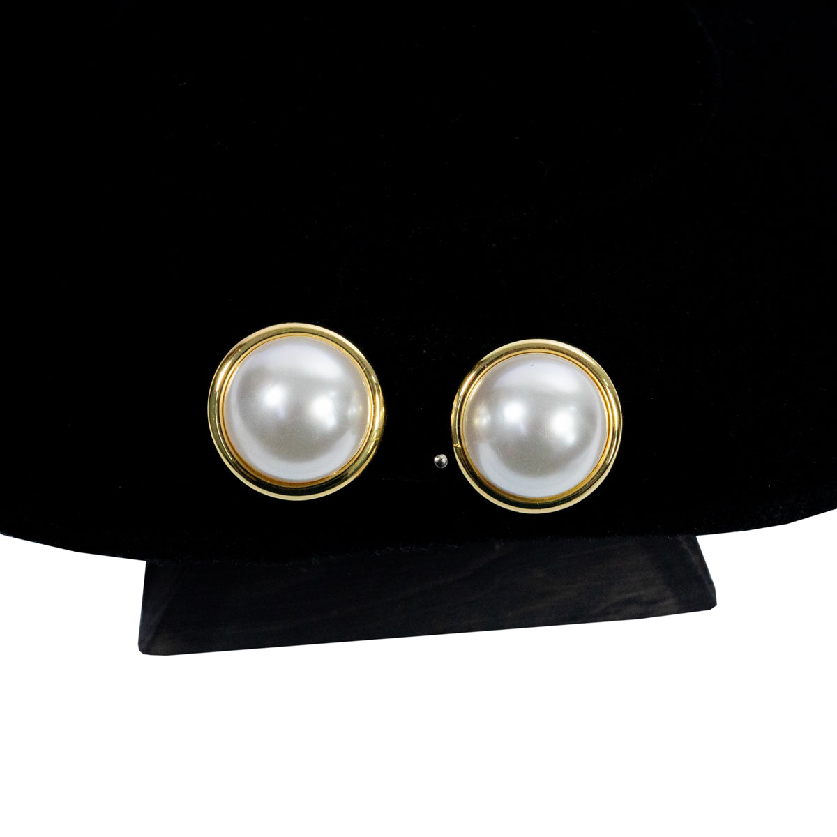 Aretes de perla ARETTE con marco dorado tamaño grande