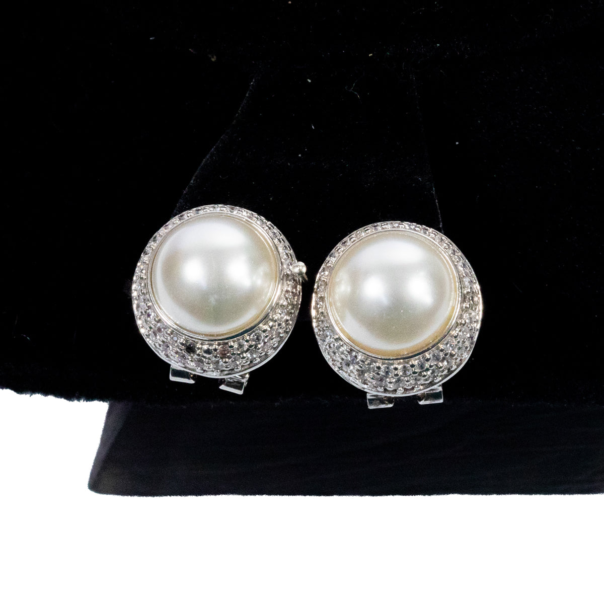 Aretes elegantes con perla blanca ARETTE detalles de cristal