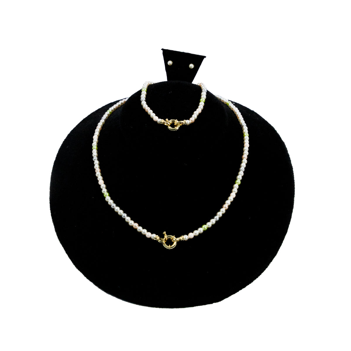 • Tipo: Set de collares finos de perlas con detalles plateados