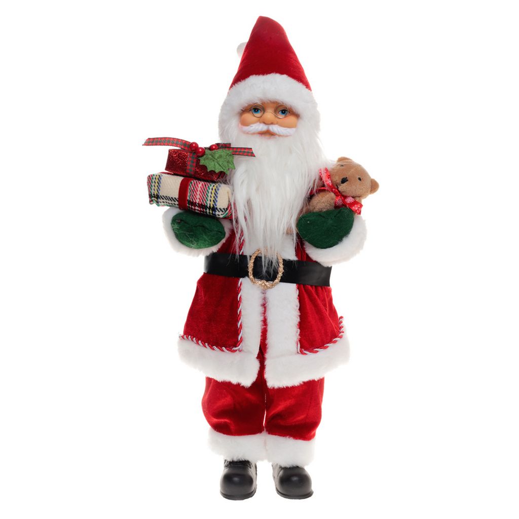Adorno navideño EXIMEX santa con regalos y oso 45 cm, rojo