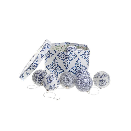 Adorno navideño EXIMEX caja con 14 esferas garigoleadas azul