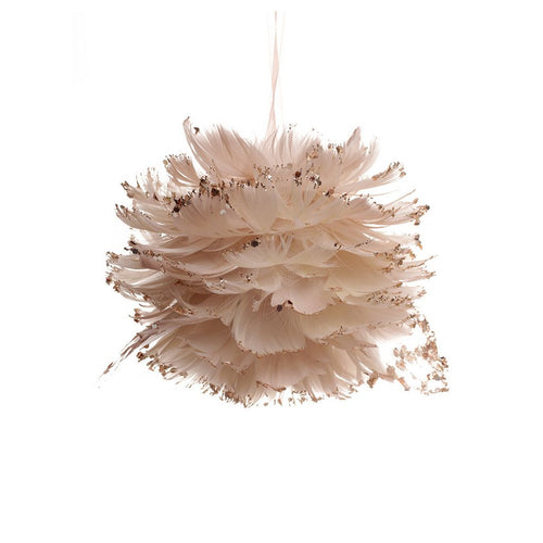 Adorno navideño EXIMEX esfera plumas con glitter 12 cm, champagne