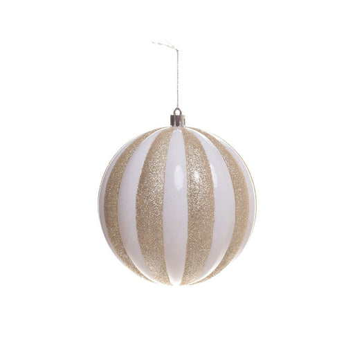 Adorno navideño EXIMEX esfera gajos 12 cm champagne con blanco