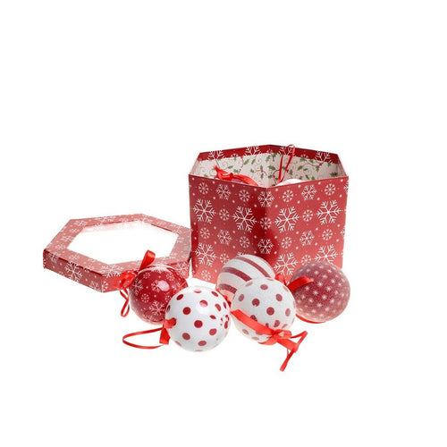 Adorno navideño EXIMEX caja con 14 esferas candy rojo y blanco