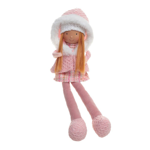 Adorno navideño EXIMEX muñeca patas largas con gorro rosa