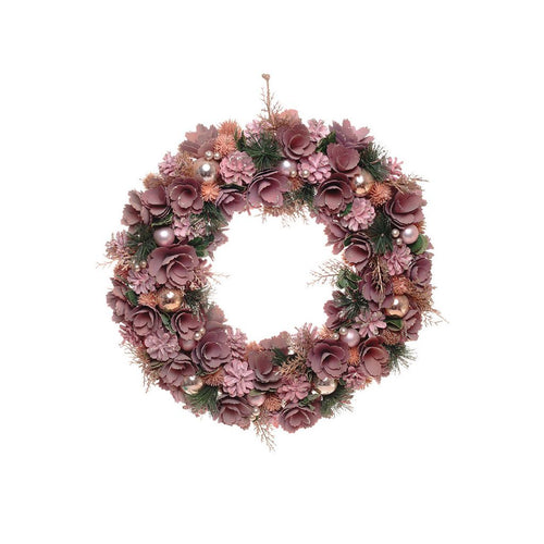 Adorno navideño EXIMEX corona corteza, esfera de flores 50 cm rosa
