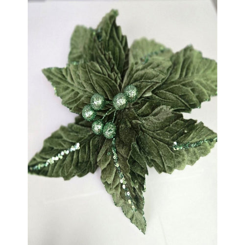Adorno navideño EXIMEX nochebuena grabado con filo glitter verde