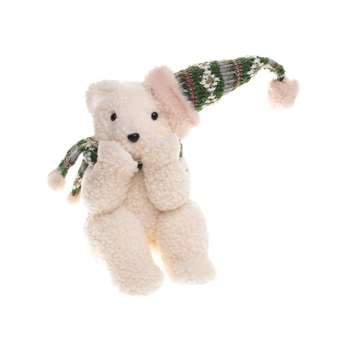Adorno navideño EXIMEX oso sentado con bufanda y gorro verde