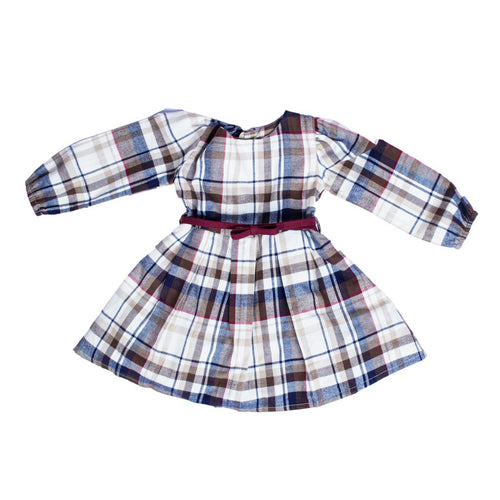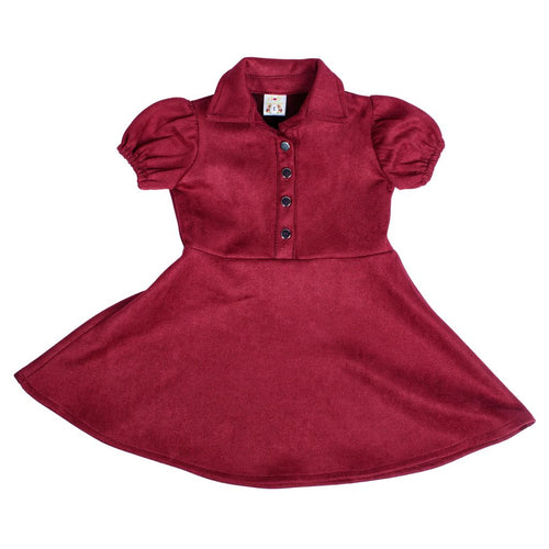 Vestido de franela FRAZON cuello camisero y manga de globo corta para bebé