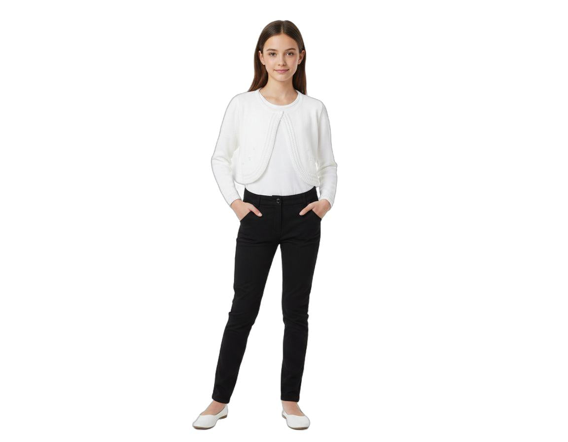 Bolera blanca de semiabrigo para complementar un vestido blusa o camiseta de manga larga. Cómoda y muy moderna. Para niñas.