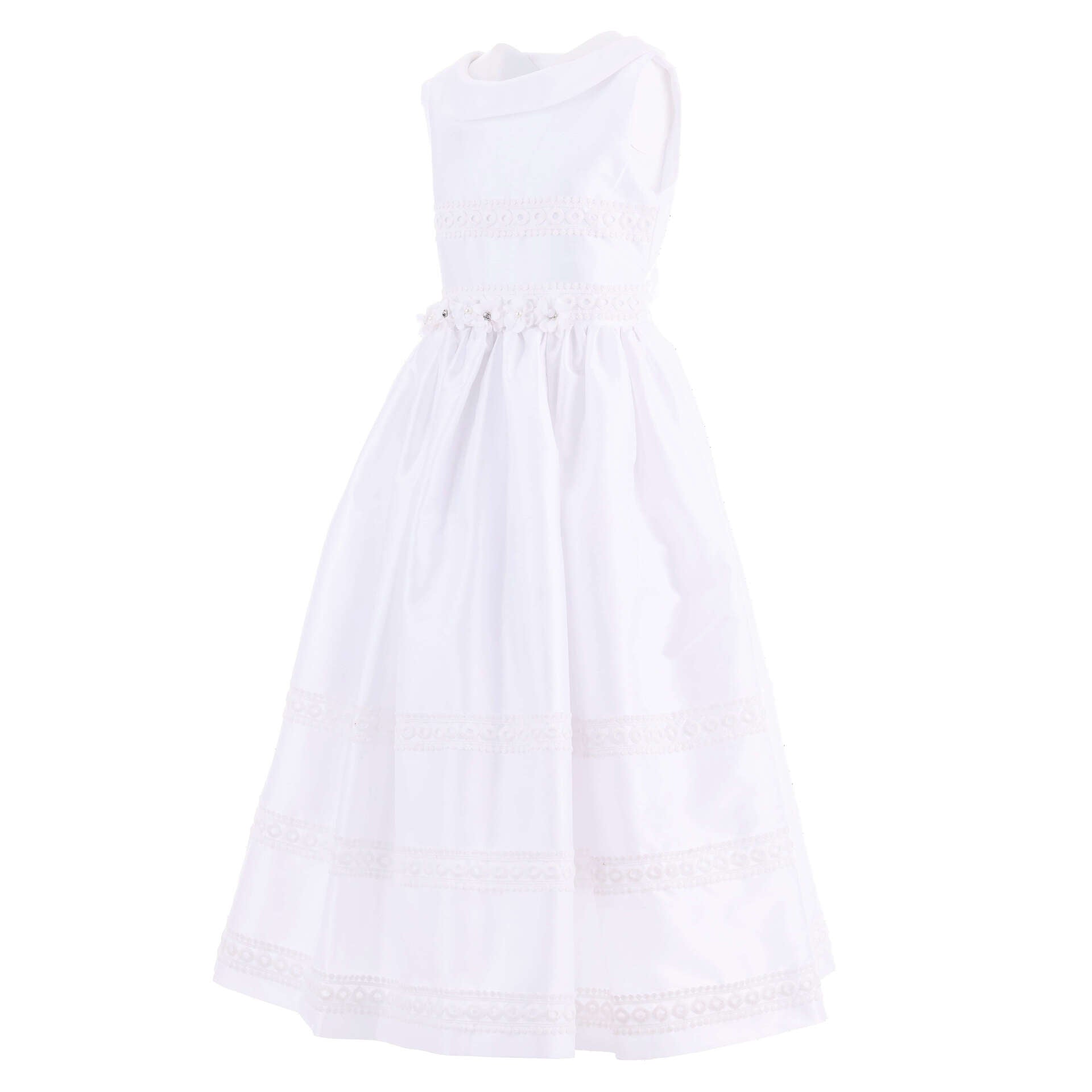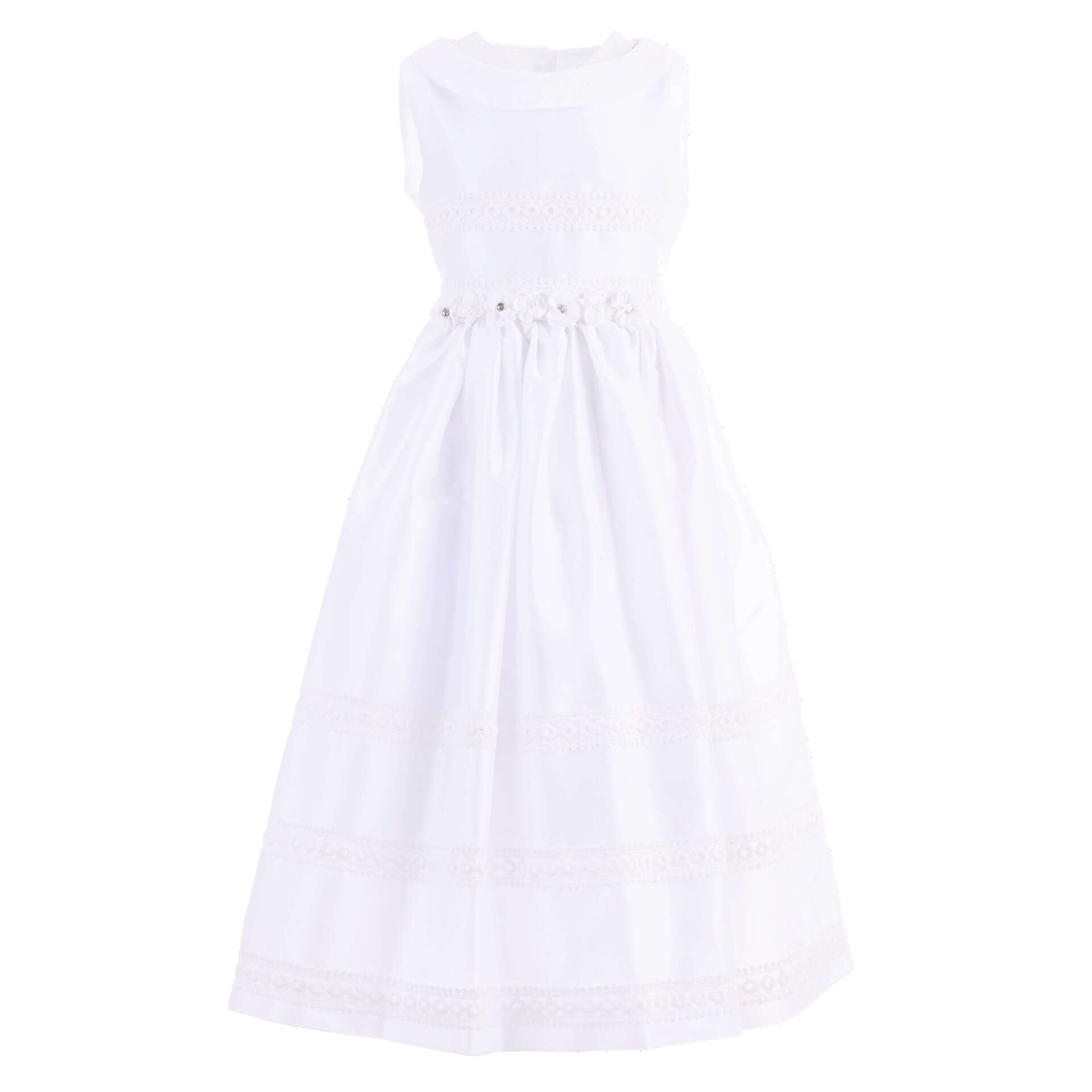 Celebra un día tan especial con la elegancia y pureza de este hermoso vestido de Primera Comunión de la marca Muñequitas, diseñado para resaltar la dulzura y delicadeza de cada niña. Confeccionado en 100% poliéster con un forro suave de 80% poliéster y 20% algodón, ofrece comodidad y frescura durante toda la ceremonia. Su diseño sin mangas con detalles bordados y aplicaciones en el corpiño, junto con la falda amplia y vaporosa, crean un estilo clásico y angelical. Ideal para quienes buscan un look tradicional con un toque de distinción. Cuidado recomendado: lavar con agua tibia, evitar el uso de cloro o protector solar para conservar su blancura y textura impecable. Perfecto para: Ceremonias de Primera Comunión Sesiones fotográficas Eventos religiosos o formales infantiles