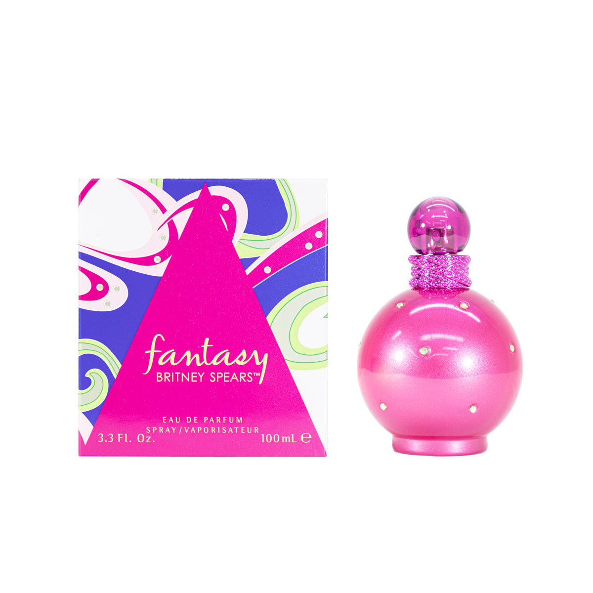 Perfume Fantasy de Britney Spears femenina de 100 ml. Con un aroma frutal y floral con notas cítricas y aromas de jazmín azucena sándalo y vainilla.