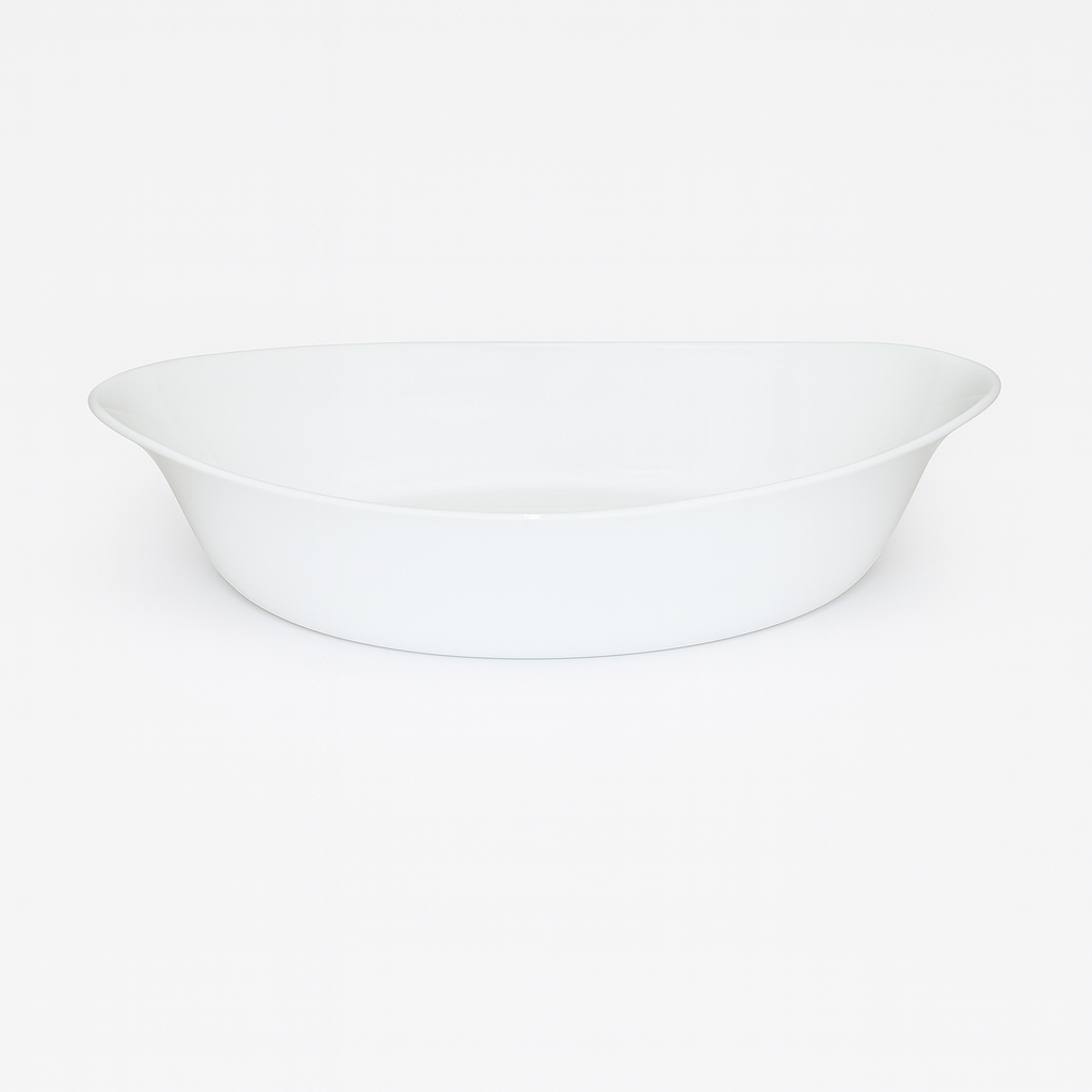 Fabricado en cerámica resistente al calor, garantiza una cocción uniforme y una excelente retención de temperatura, permitiendo llevar tus preparaciones directamente del horno a la mesa con una presentación elegante. Su diseño ovalado y acabado moderno lo convierten en una pieza práctica y decorativa.