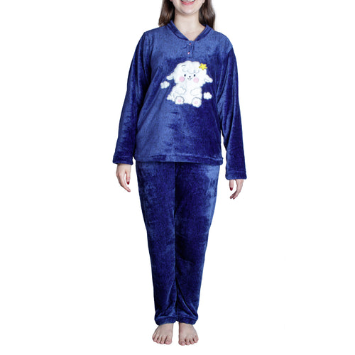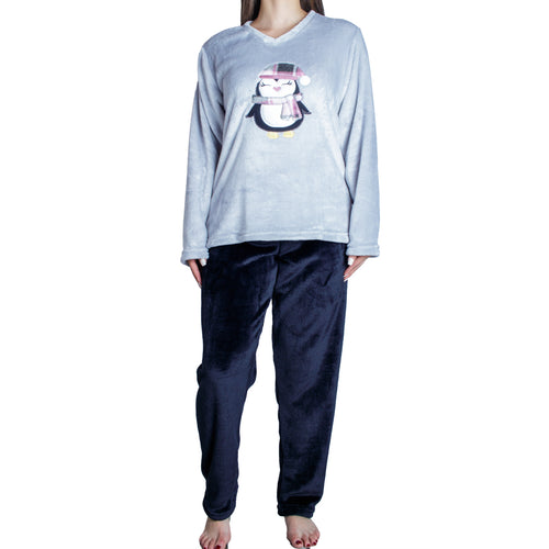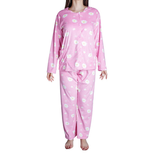 Pijama de franela FLEECE con botones y bolsillos para mujer