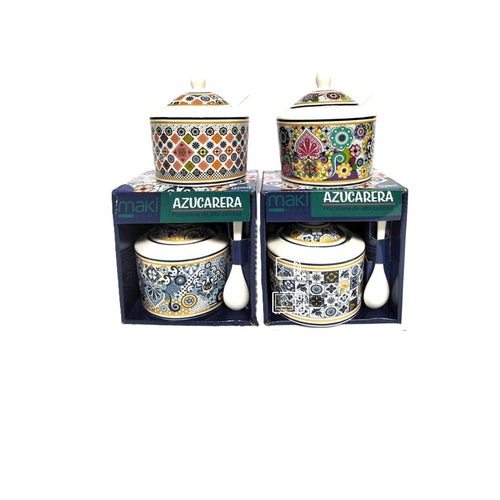 Azucarera MAKI con tapa y cuchara con diseño de talavera capacidad 16 onzas