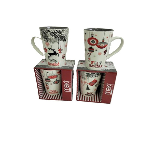 Taza MAKI de porcelana con diseño tipo navideño capacidad 16 onzas