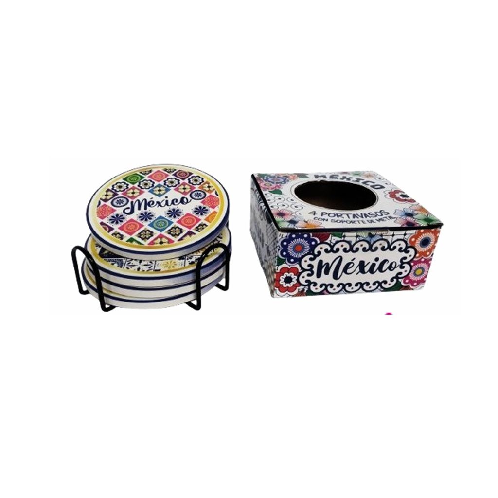 Organiza tus bebidas con estilo gracias a este porta vasos MAKI decorado con diseño de talavera y base metálica. Ideal para mantener tus vasos al alcance y aportar un toque elegante y colorido a tus espacios, combinando funcionalidad y decoración.