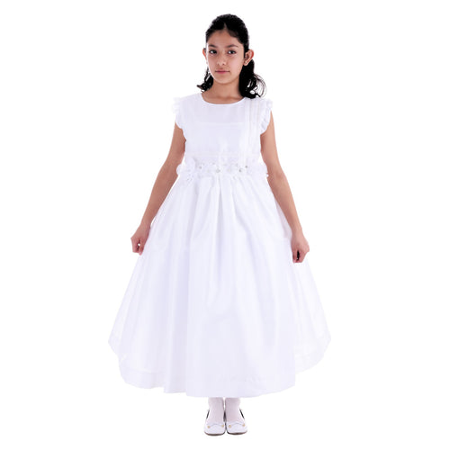 Vestido de primera comuniòn MUÑEQUITAS cuello de ovalo y cinturon de flores desmontable para niña