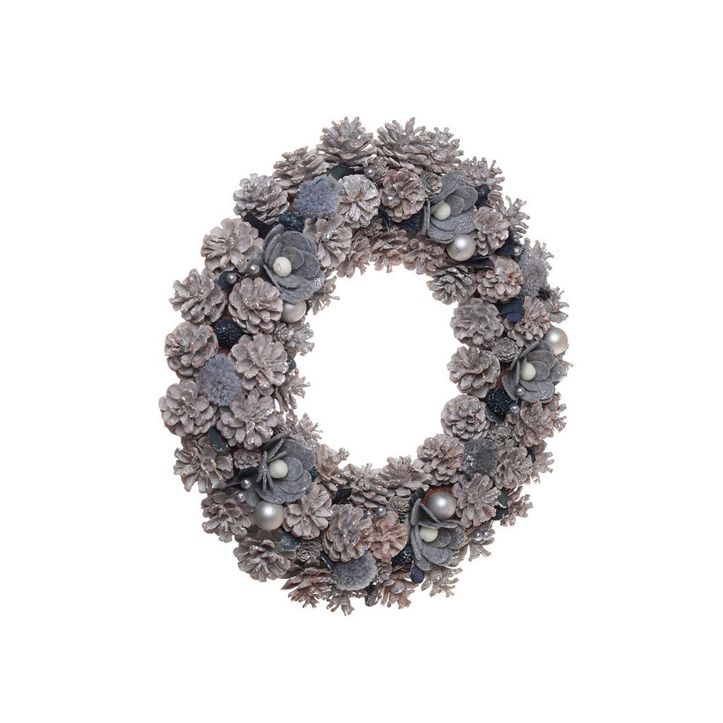 Adorno navideño EXIMEX corona corteza con pompones 50 cm, azul