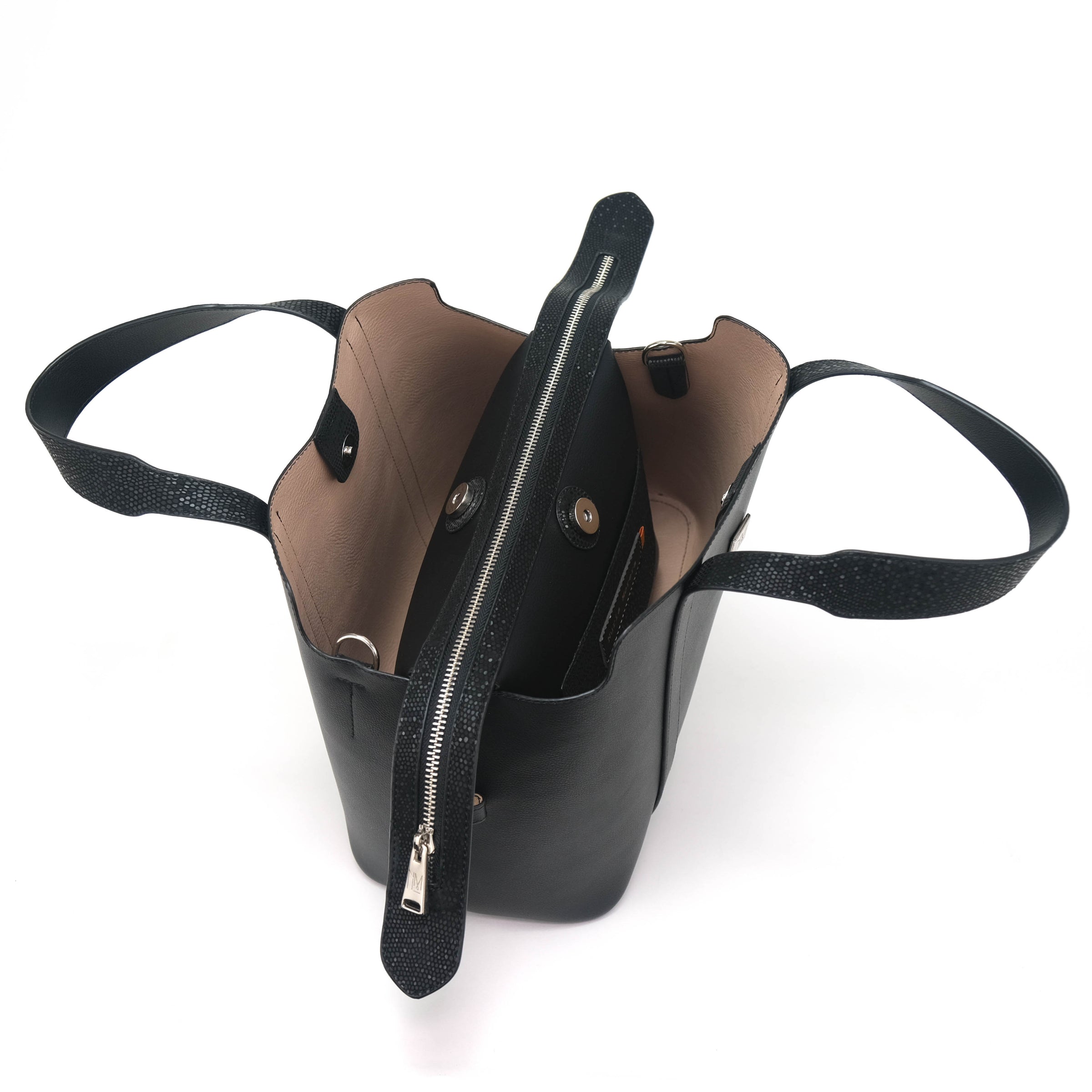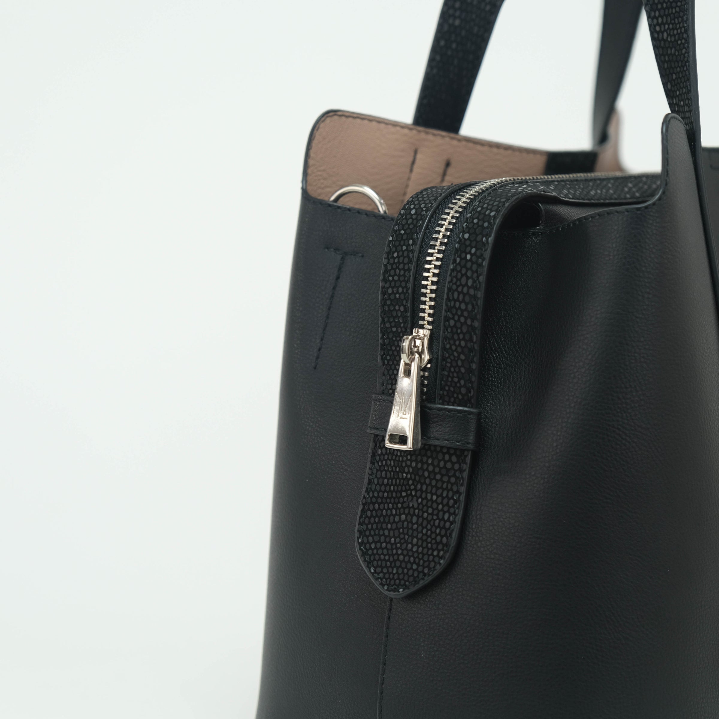 Nuestro bolso Saona es un accesorio práctico, funcional y elegante que se adapta perfectamente a tu día a día. Cuenta con un amplio espacio interior donde puedes almacenar tus pertenencias valiosas de manera segura gracias a su cremallera. Además, tiene dos espacios adicionales con iman que te permiten tener fácil acceso a tus pertenencias más utilizadas.