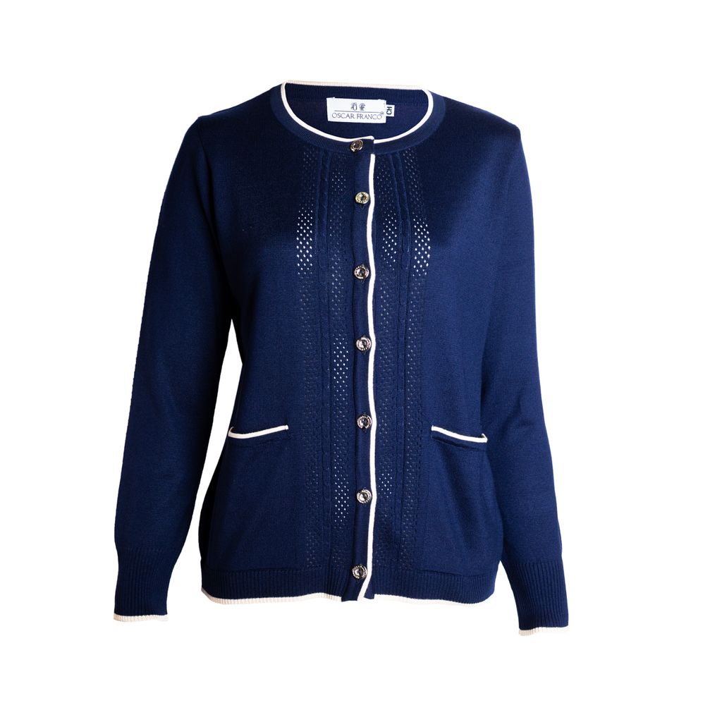 Sueter cuello redondo OSCAR FRANCO con botones y bolsos frontales para dama